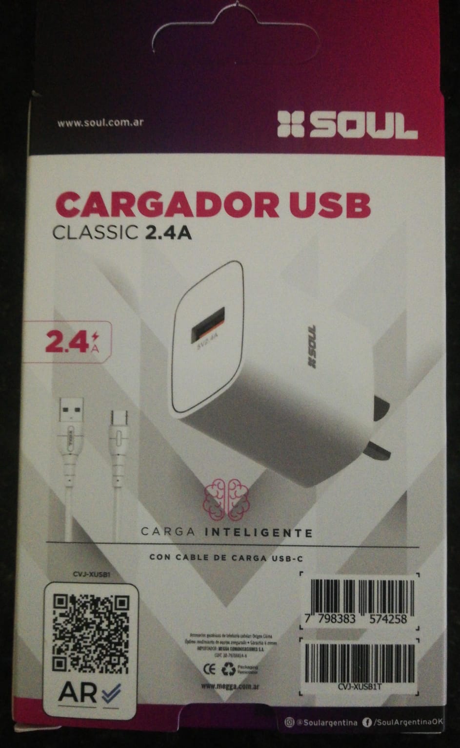CARGADOR SOUL CLASSIC TIPO C 2.4A CVJ-XUSB1T* de SOUL Cargadores. Está pensado para un uso práctico y confiable, ayudando a resolver tareas cotidianas con un funcionamiento estable y un formato fácil de usar.